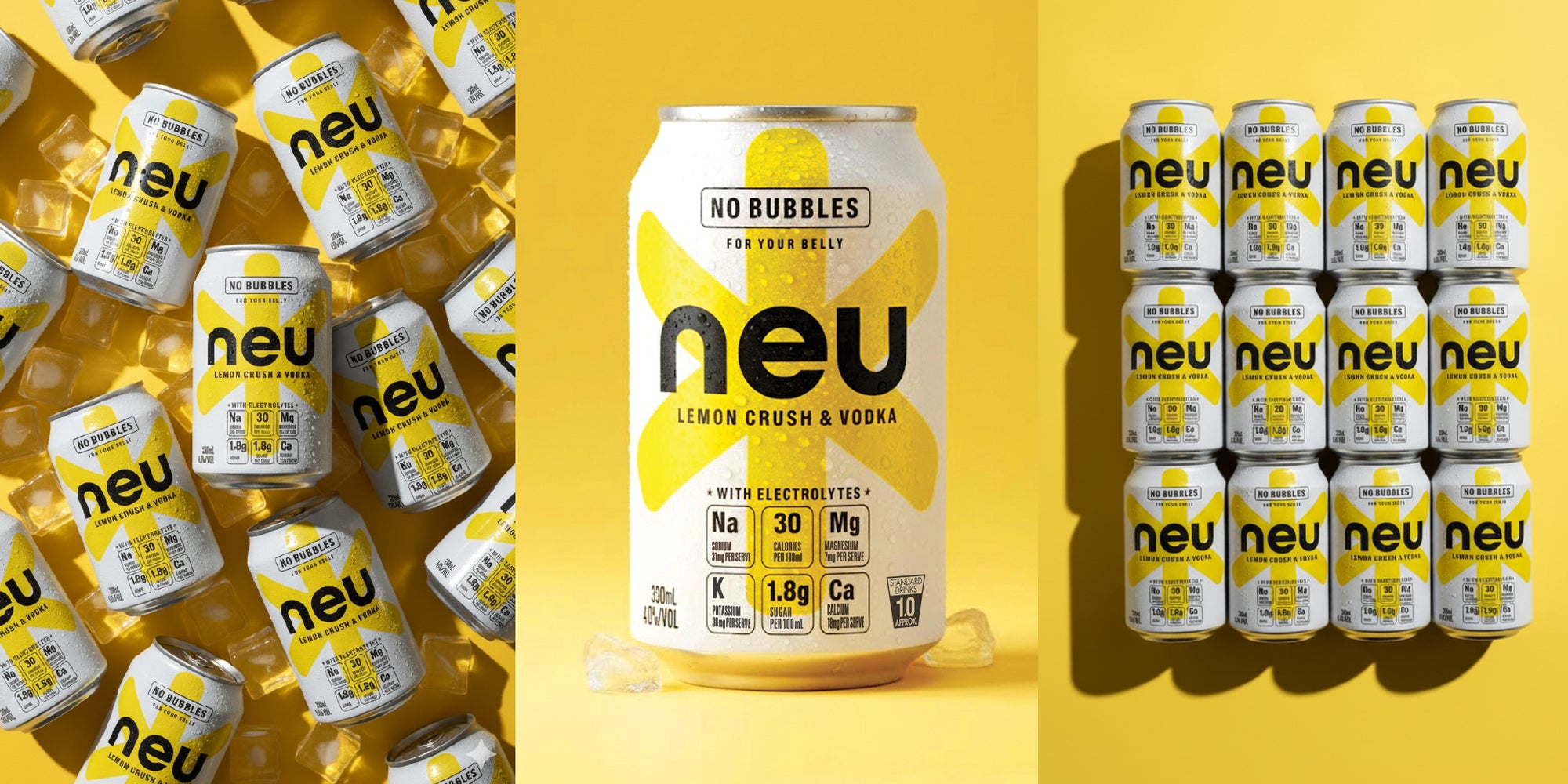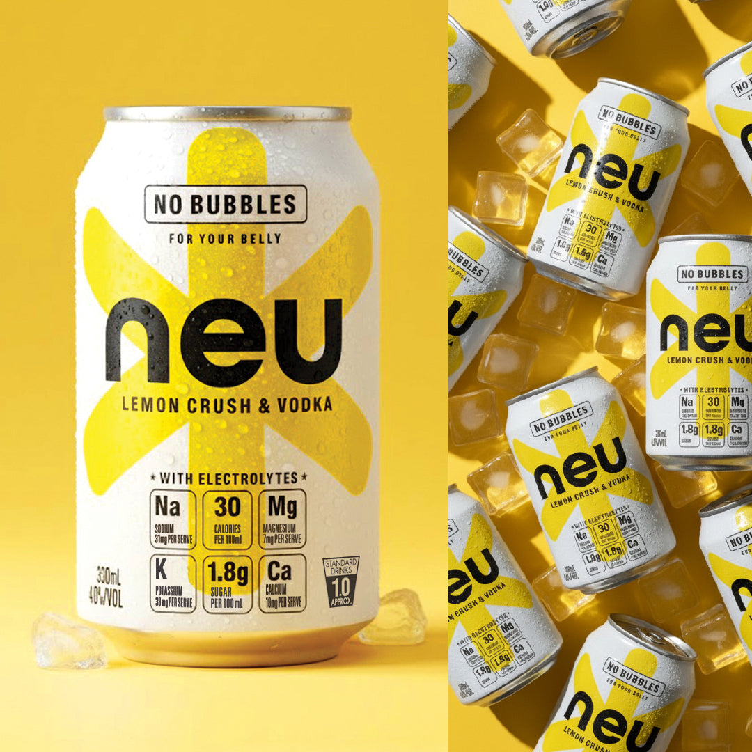 The first vodka + electrolytes drink without bubbles, neu blends premium vodka with electrolytes and natural ingredients for a clean, light, and refreshing taste. Each 330ml can contains 99 calories, low sugar and all-natural flavours, colours and sweeteners. Proudly created, owned and made in Australia.